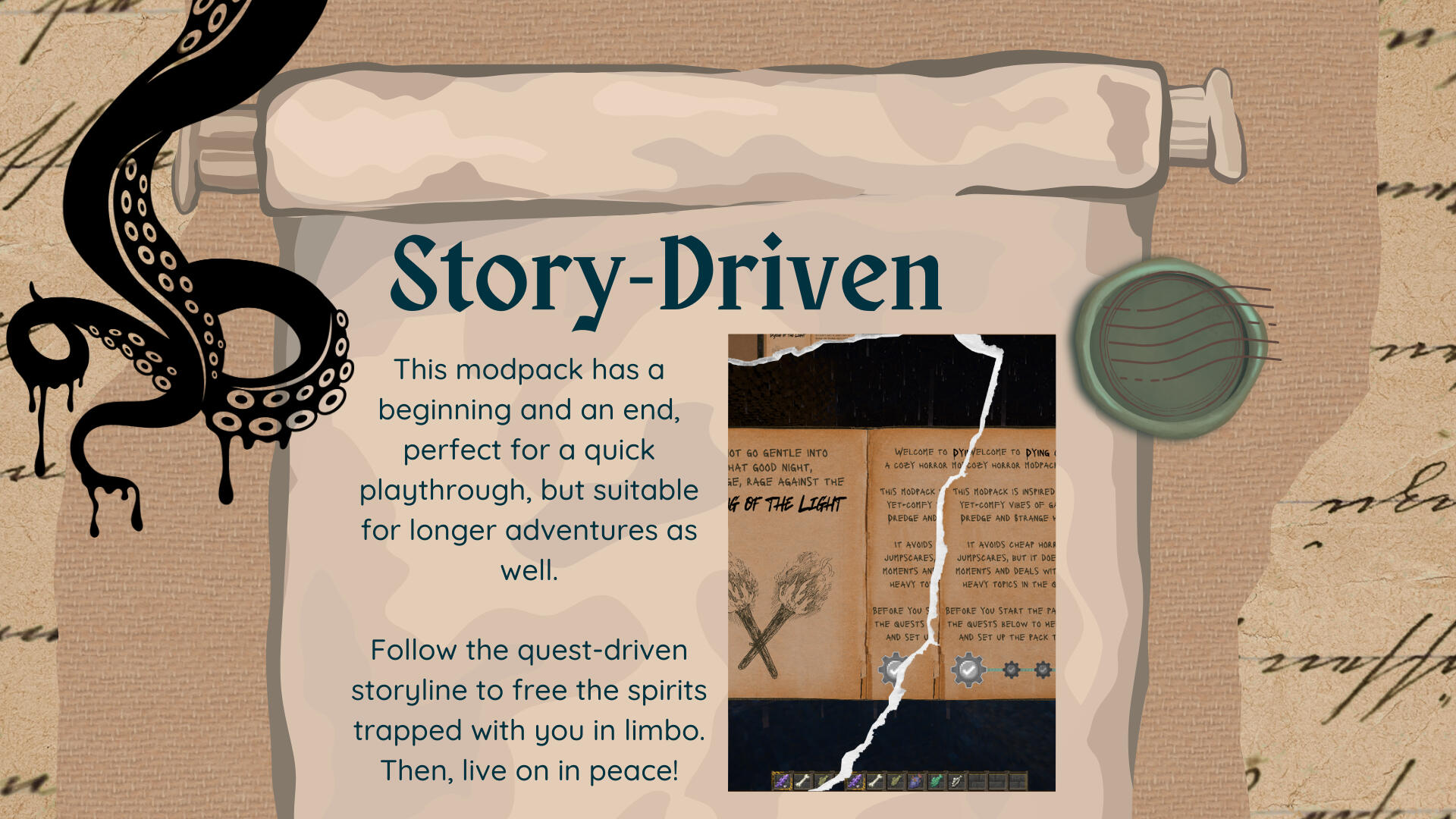 If you have any difficulties with the modpack, we recommend first checking the in-game documentation, either the Quests or the Old Journal added by Patchouli.If that fails, however, feel free to visit our Github wiki! And failing that, please pop into our discord (linked in the footer) and say hello!Please note that Dying of the Light does not have its own discord, so you will be invited to the Cottage Witch discord instead, and can ask questions in the #dying-of-the-light channel. :)Are you having a crash or other bug with the modpack? Please report them at our Github Issue Tracker.